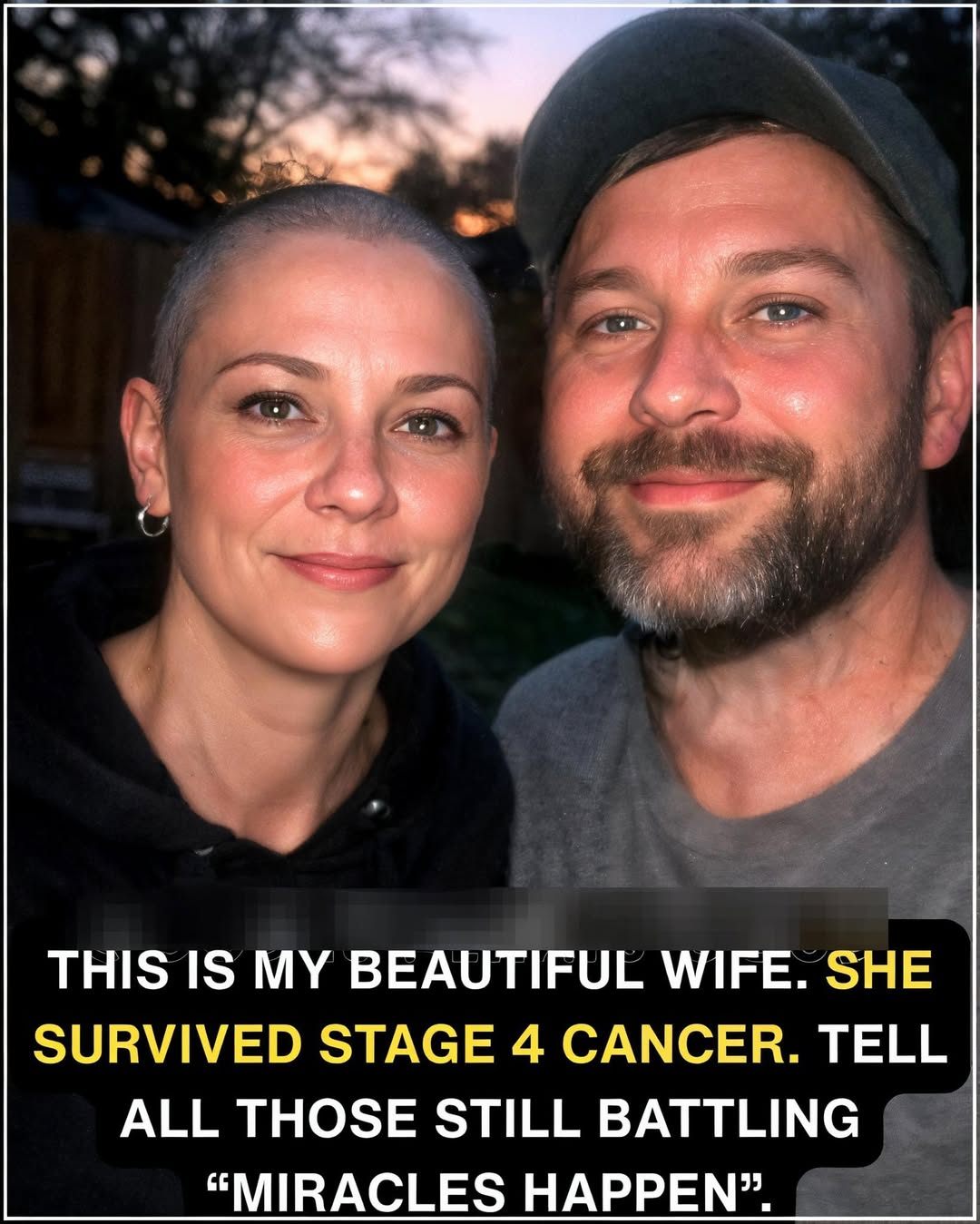 In the quiet nights, she chose grace . My wife survived Stage 4 cancer — and became light through every treatment and prayer . Today we celebrate healing , laughter , and love .