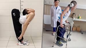 The extraordinary story of Jiang Yanchen (21), known as China’s “folded boy,” is a powerful testament to human resilience when met with medical brilliance. For years, Jiang lived with an unimaginable condition: his spine was contorted backward at a 180∘ angle. His recent moment of standing tall is a compelling piece of evidence suggesting that human courage, combined with medical excellence, can indeed realign the limits of the human body and redefine what is possible.