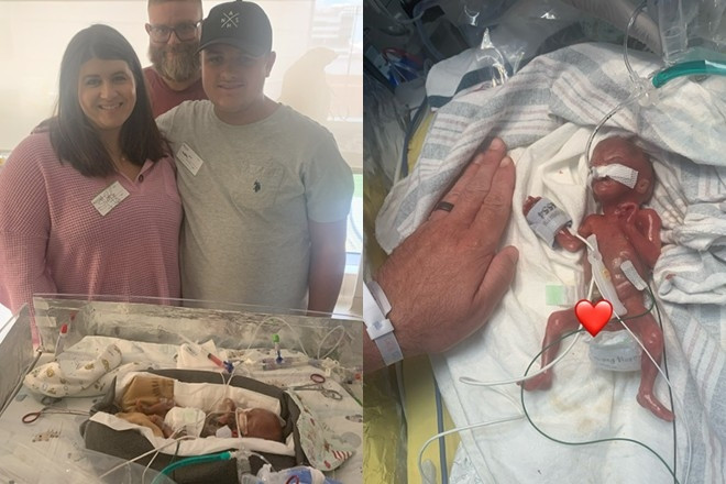 Born via IVF at 32 weeks, these tiny warriors — Parker Michael, Carol Marie, Emmett Ryan, Nicole Lynn, and Ryker James — arrived in just three minutes, each weighing an incredible 3-4 lbs. After a month of brave bed rest, Jessica surpassed her goal, filling the room with overwhelming love.