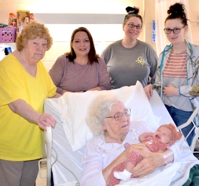 In a rare, heart-stirring moment, 98-year-old Kentucky matriarch MaeDell Howell cradles her tiny great-great-great-granddaughter — a living bridge across a century.