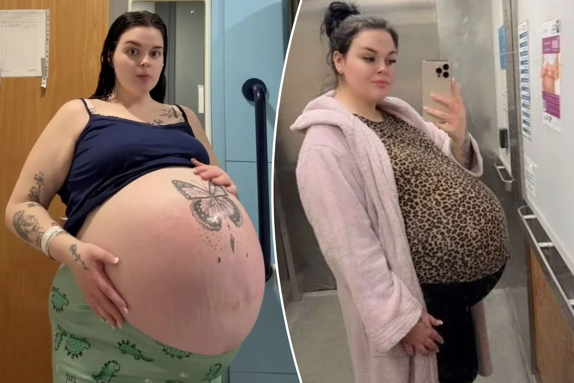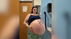 One moment, she stands as a pillar of strength—carrying the weight of four heartbeats, her body a temple of endurance and quiet hope. The next, the world shifts. The wait is over.