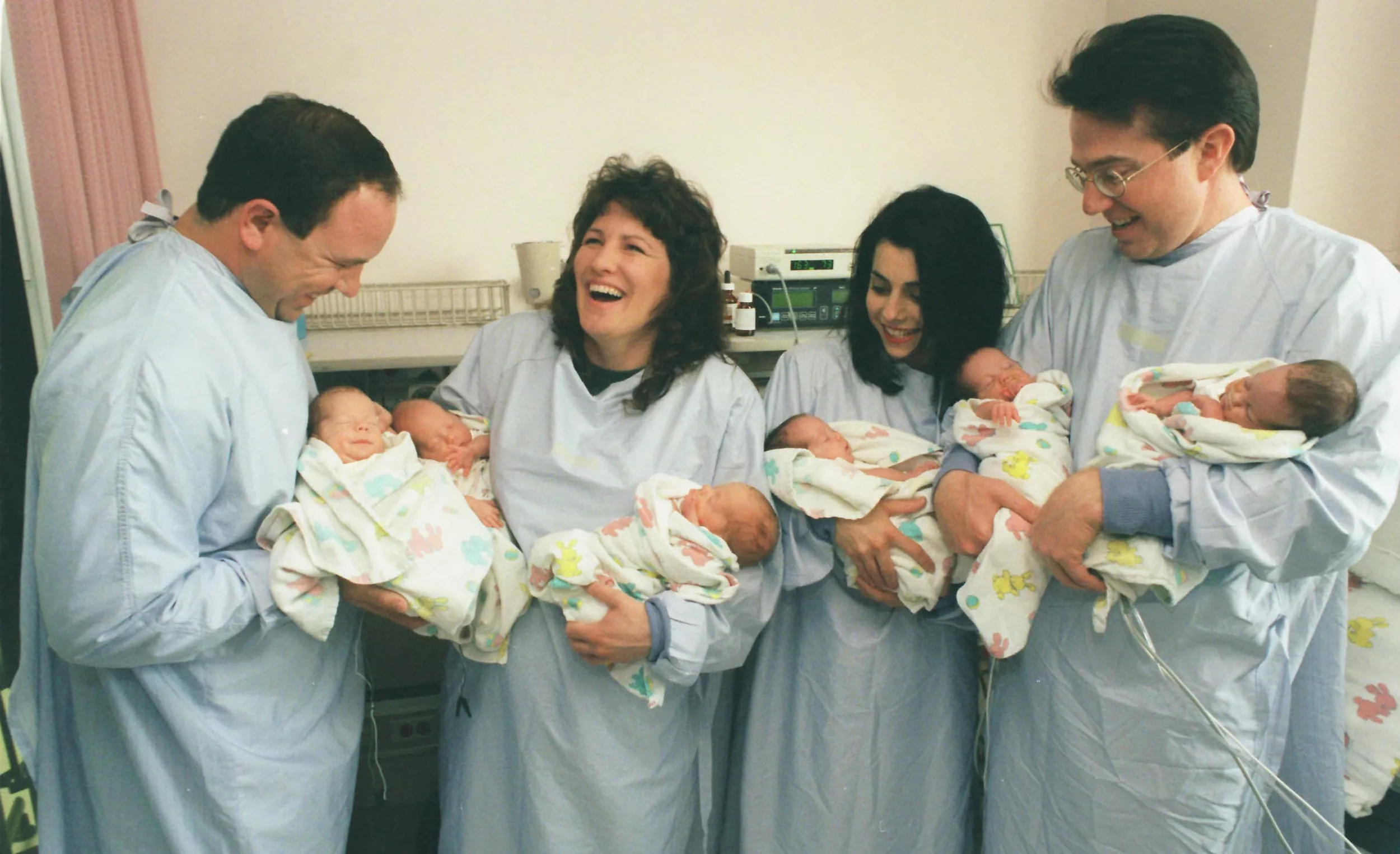 Some stories feel written by fate. Three identical sisters—Vicky, Sarah, and Joanna—now stand beside the woman who first held them in her hands: their mother.