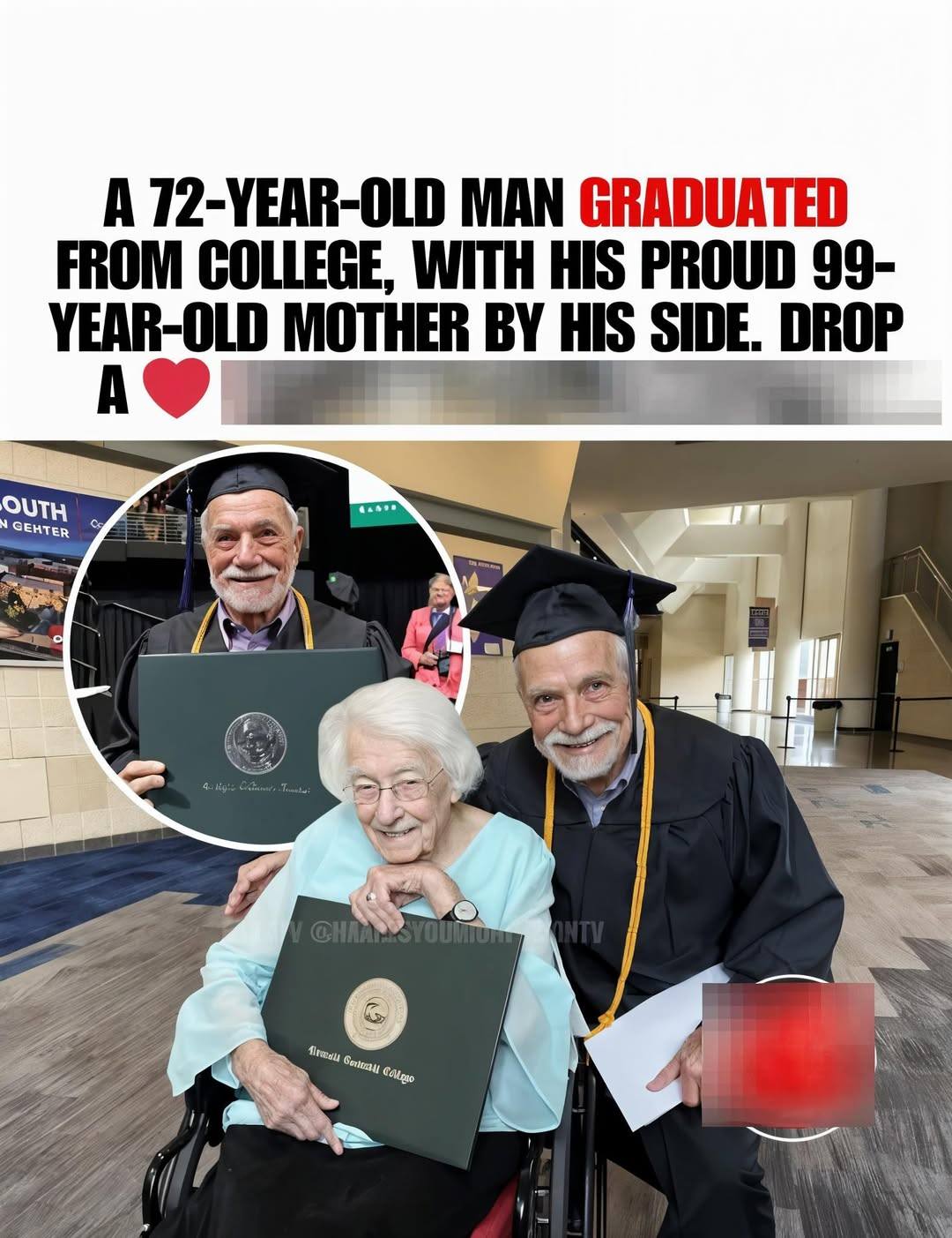 Beside him stood his 99-year-old mother, smiling with quiet pride 🤍