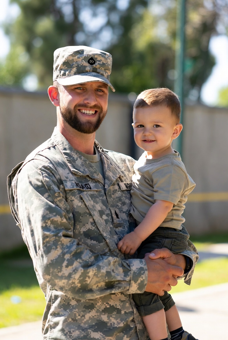 Between deployments, long days, and quiet sacrifices, this proud soldier carries his most important mission in his arms 🇺🇸🤍