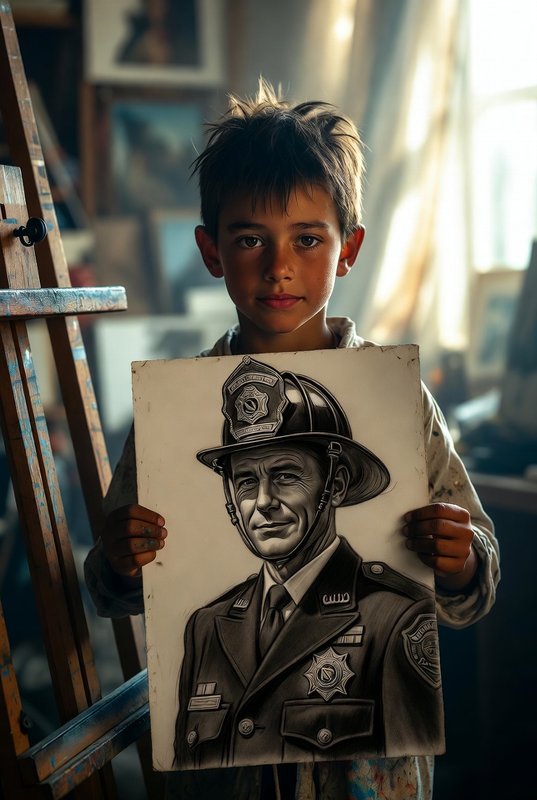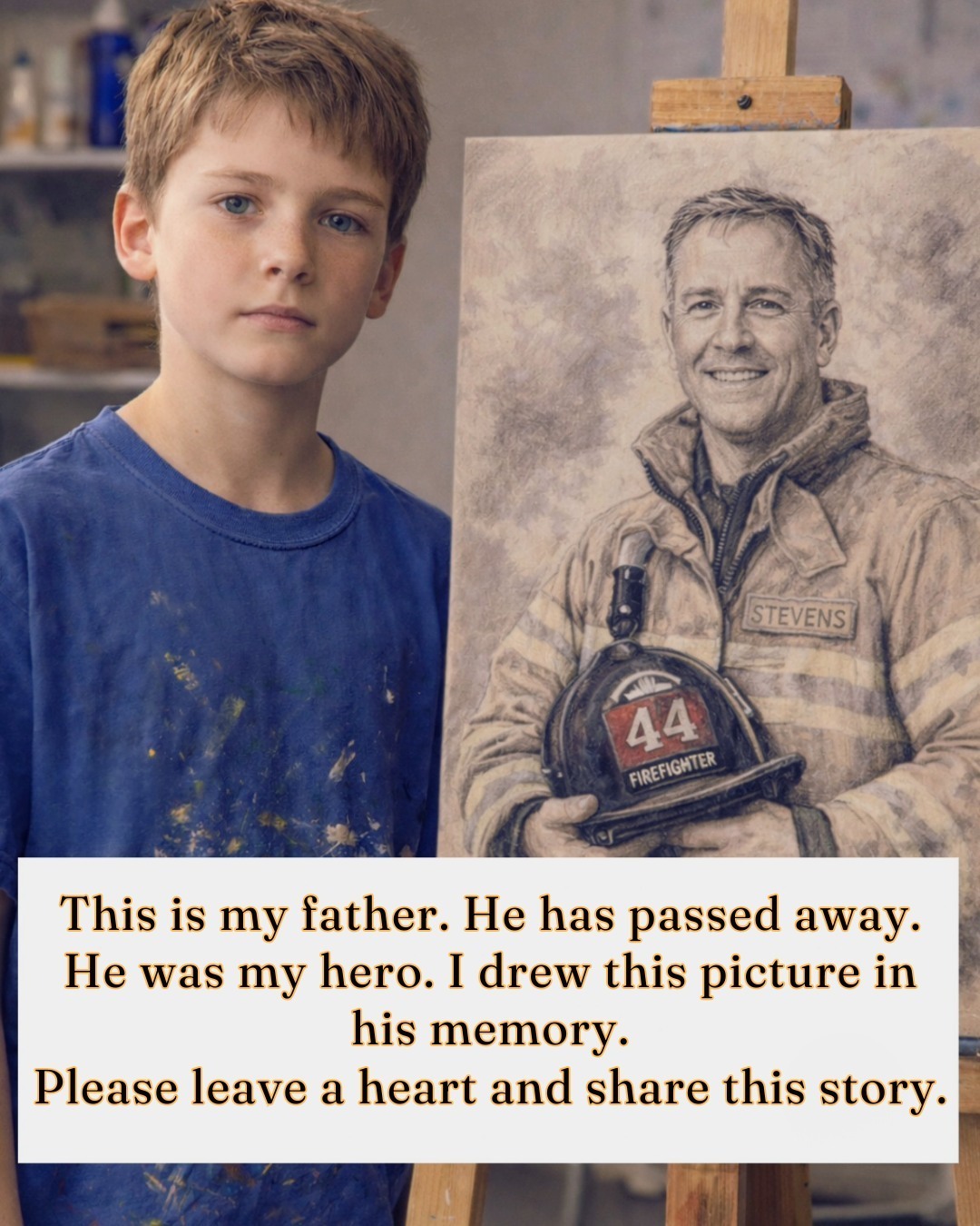 After losing his father — a brave firefighter who gave his life in the line of duty 🚒 — this young boy chose to honor him through art 🎨
