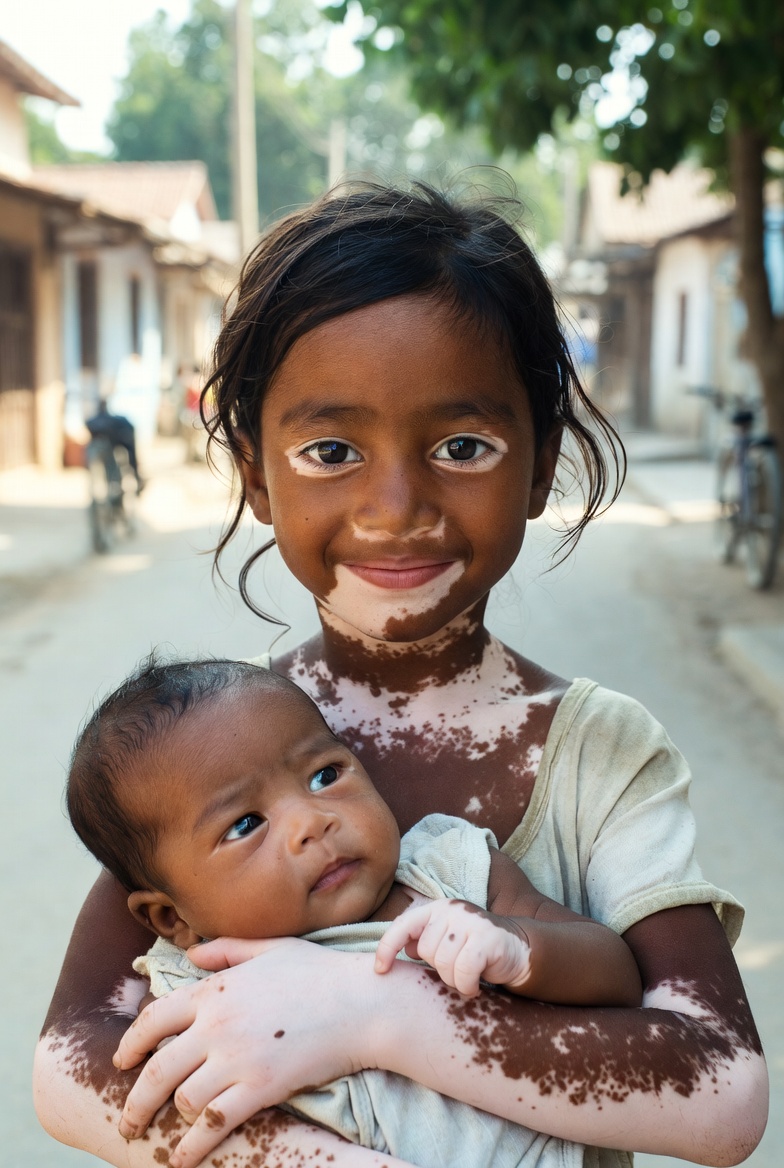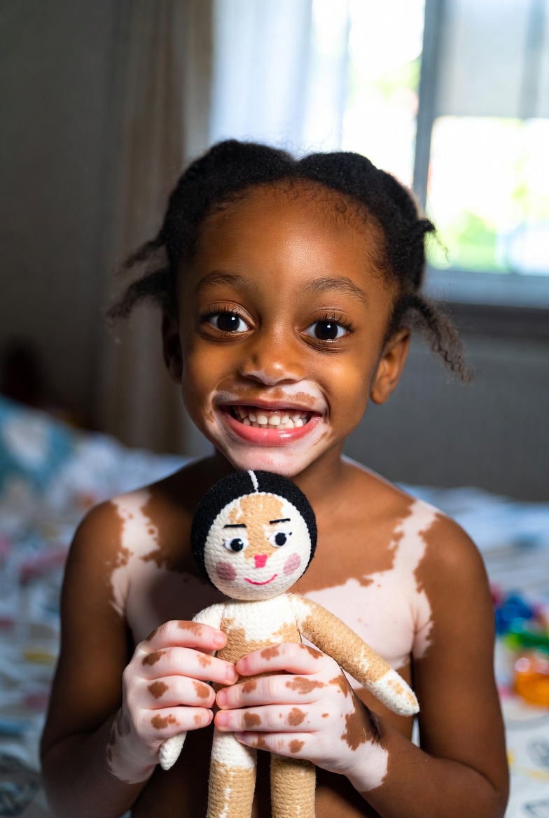 Her skin shows vitiligo —