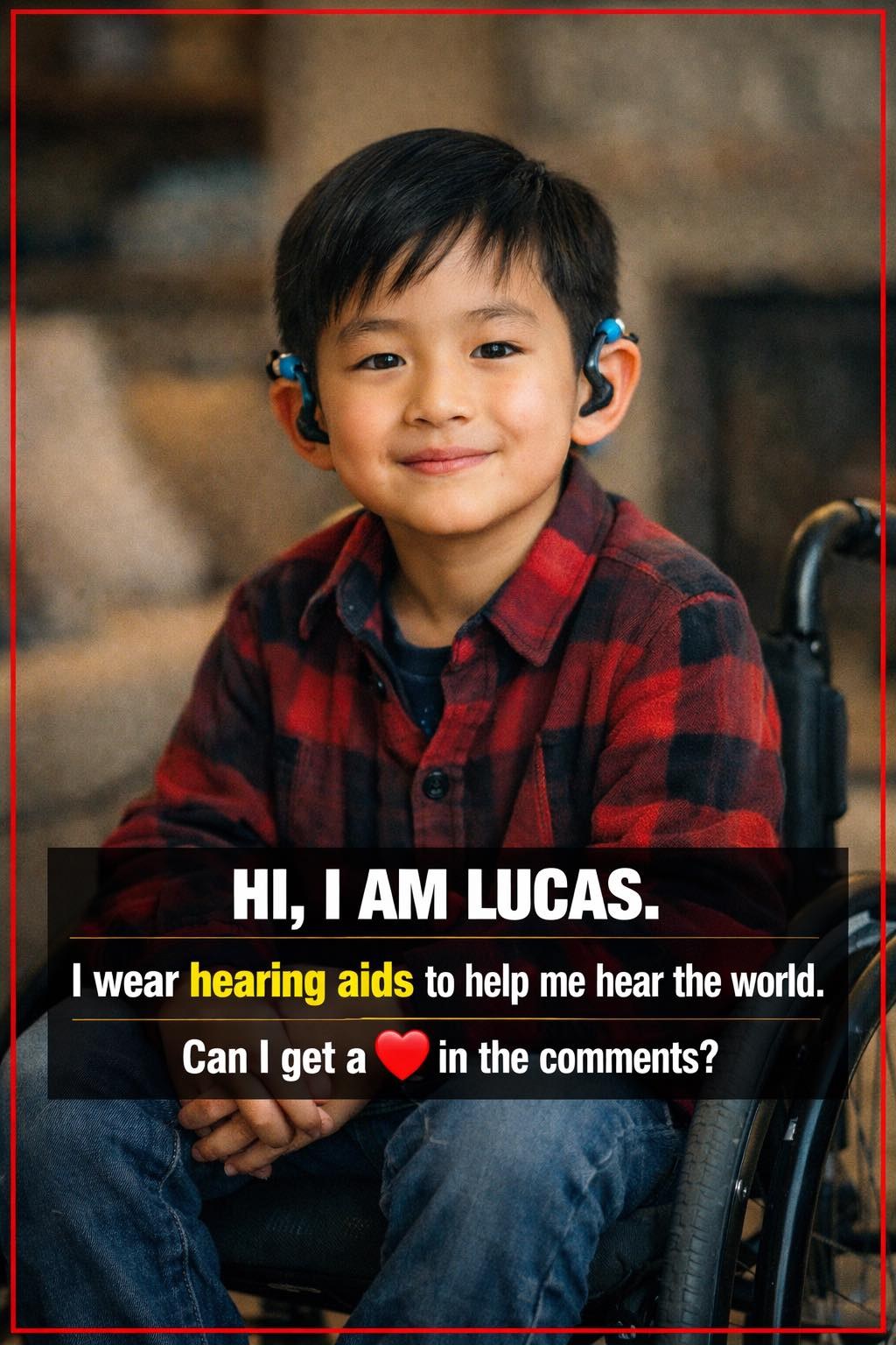 Lucas wears hearing aids 🦻, helping him connect with the sounds around him — laughter 😂, music 🎶, and the voices of people who love him 🤍.