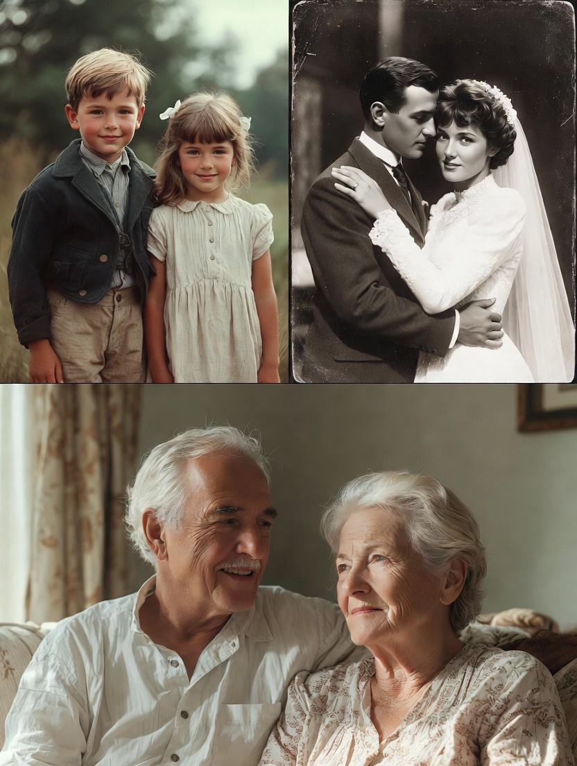 From barefoot childhood days and innocent smiles… to a wedding filled with hope and promise 💍… to a lifetime shaped by shared laughter, quiet sacrifices, and whispered prayers in hard moments 🙏 — this is what enduring love truly looks like.