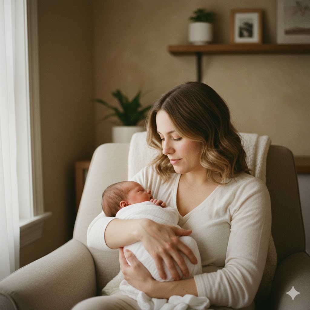 In her arms rests a tiny miracle — only days old, fearfully and wonderfully made 👶✨