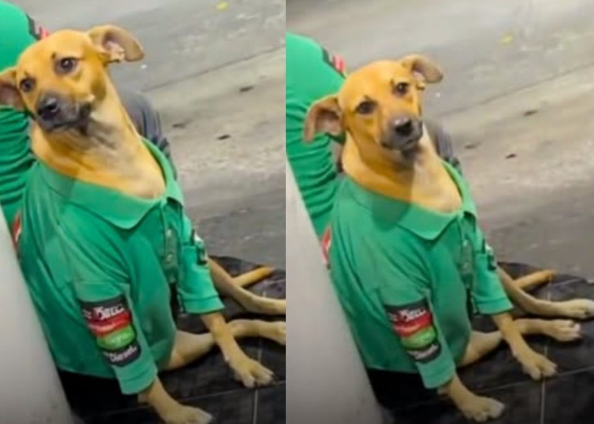 Negão was given his own employee identity badge and a uniform cap, symbolically welcoming him as the station’s “greeter.” The gesture delighted customers, many of whom now stop by specifically to see him—often bringing toys, snacks, and affection along with their fuel purchases.