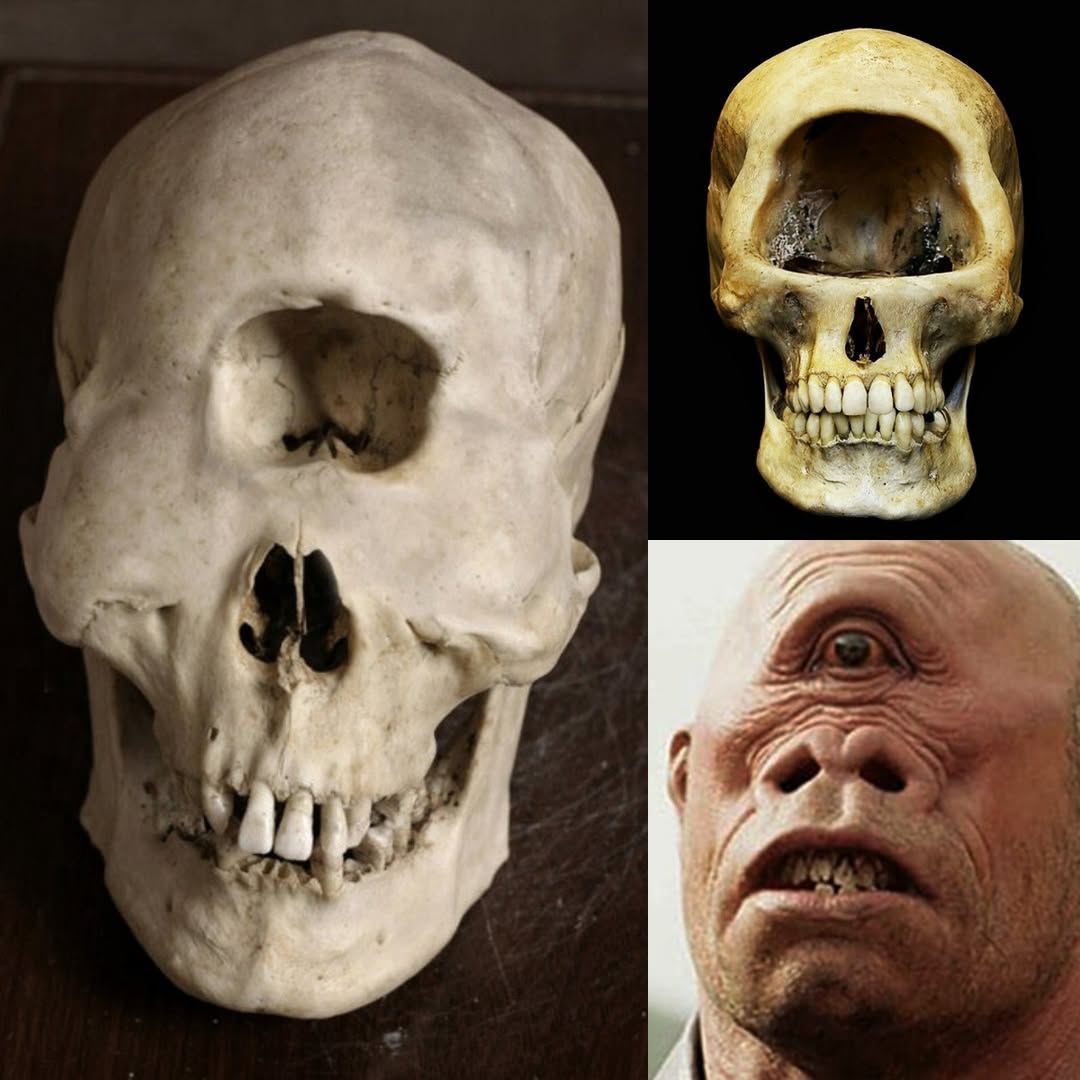 Measuring nearly three times the size of a human cranium, the skull possesses distinct humanoid features — jaw alignment, nasal cavity structure, and teeth consistent with omnivorous consumption. Yet the single orbital cavity, perfectly centered above the nasal bridge, suggests a creature previously unknown to science.