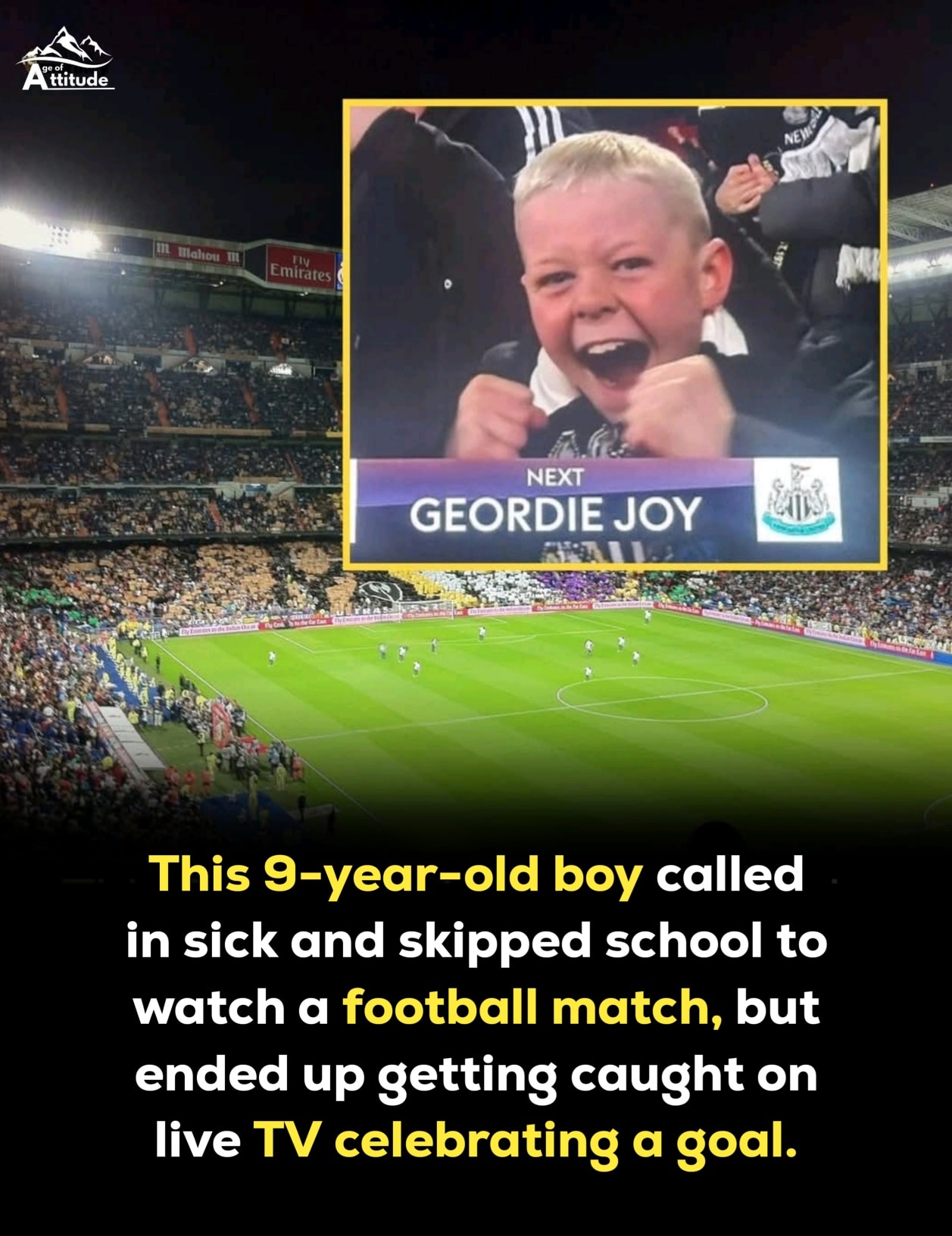 During the game, TV cameras captured him celebrating Newcastle’s win — unintentionally revealing he wasn’t home sick after all. 📺😄 The footage quickly made its way online, and the school later marked his absence as unauthorized, sending a notice to his parents.