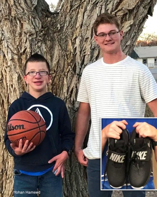 A high school senior named Skyler heard what happened. They weren’t close friends, but he knew no kid deserves to feel humiliated like that. So Skyler spent his own money on a brand-new pair of basketball shoes and showed up at Tanner’s front door with them in his hands. 👟✨