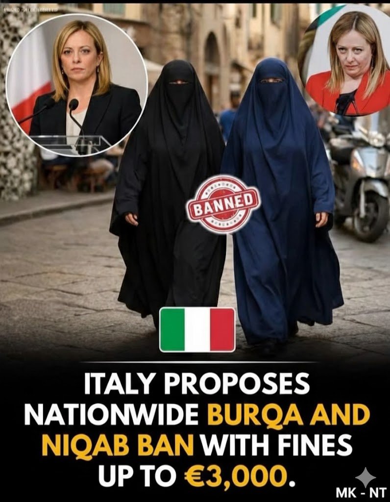 Italy has introduced a proposal that would restrict face-covering garments such as the burqa and niqab in public spaces, with fines reportedly reaching up to €3,000.