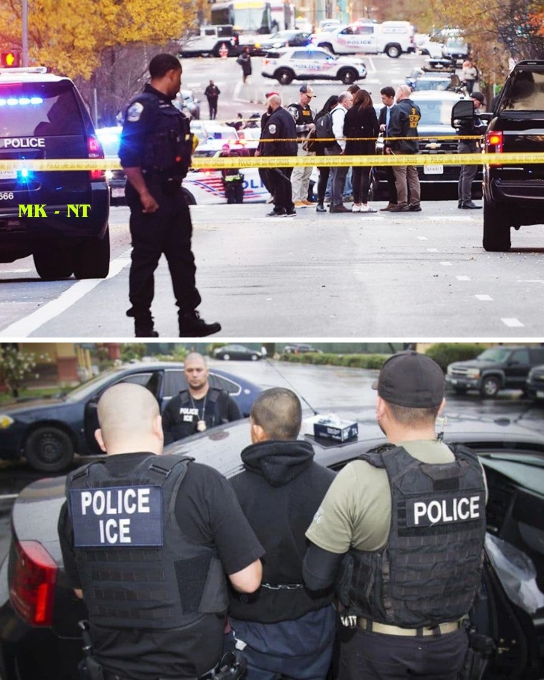 In a separate action, ICE officers were observed taking a suspect into custody.