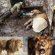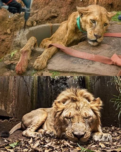When the team arrived, they found the lion barely conscious, clinging to life. With precision and care, they sedated him and used ropes and harnesses to lift the great animal to safety. The rescue was tense and delicate, but as the lion’s massive form finally emerged from the darkness, relief washed over everyone present.