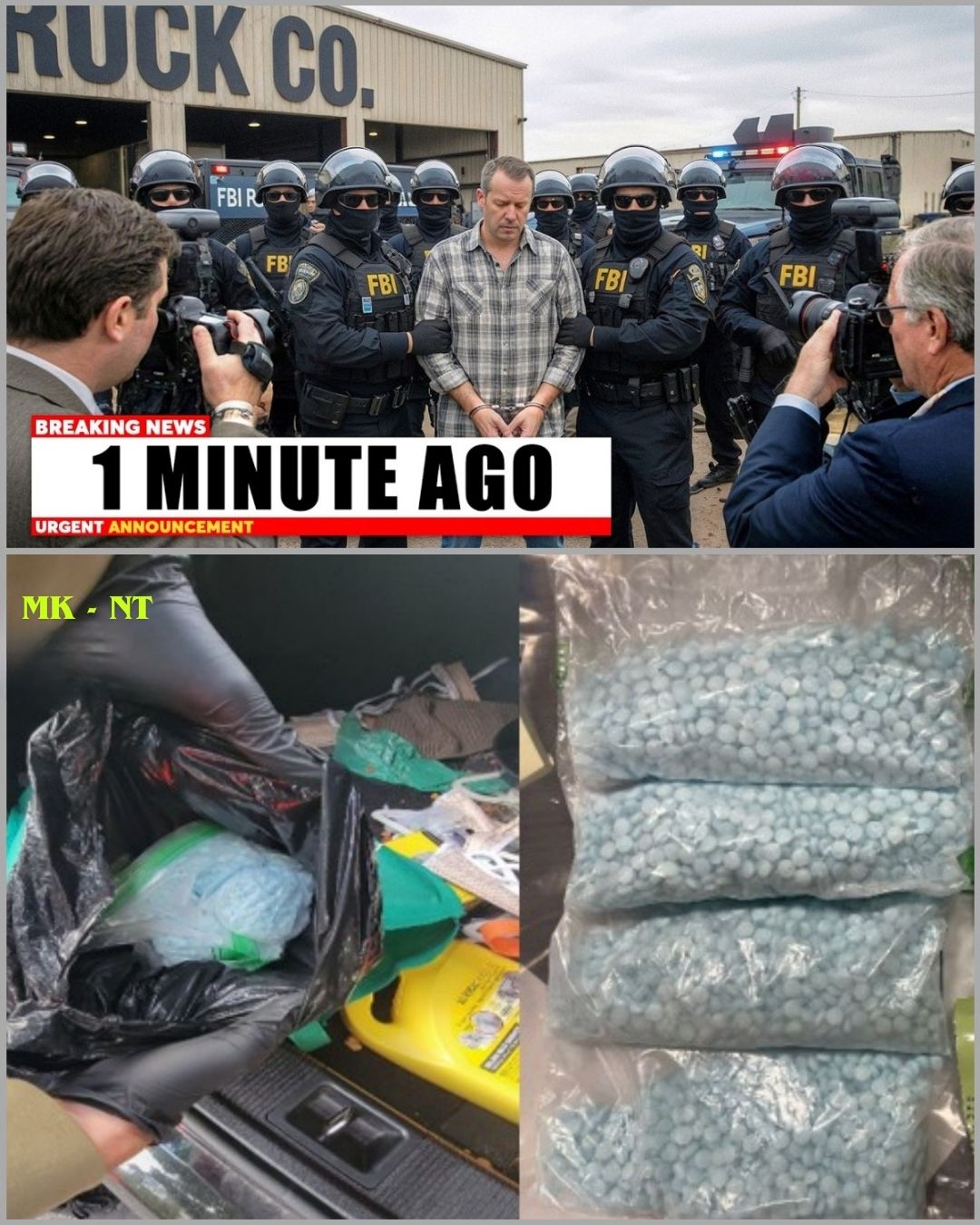 Authorities displayed large quantities of blue pills and packaged materials reportedly seized during the investigation, suggesting a significant enforcement action. ๐๐ฆ