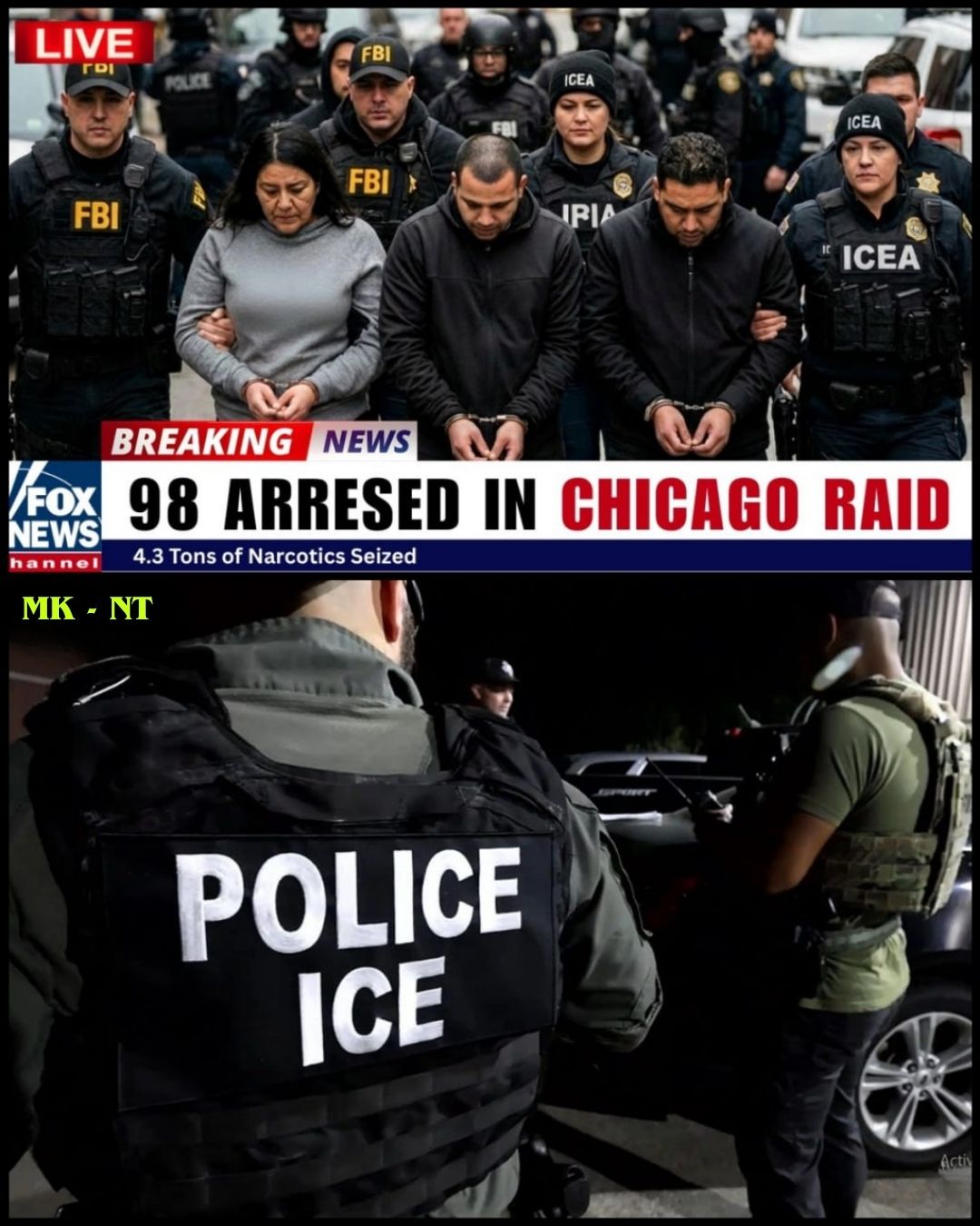 Federal agents from the FBI, ICE, and local task forces were seen conducting coordinated enforcement actions across multiple locations. đźš” Officers secured perimeters while groups of detainees were processed under supervision.