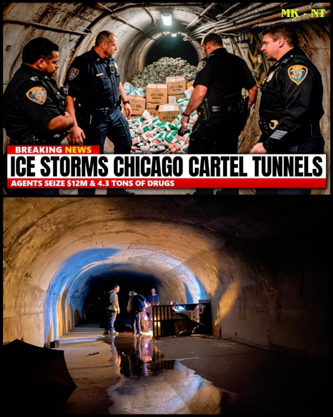 Law enforcement officers were seen inside an underground tunnel system during a coordinated operation. Boxes and packaged materials were documented as evidence while teams secured the area. ๐ฆ๐