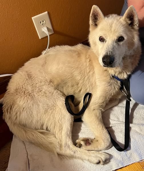 No one could explain how the old white husky — or husky mix — managed to make that journey, but from the moment he arrived, he was home. Though the vet could never draw blood for tests, it was clear his body had endured too much for too long. Heartworms, seizures, and weakness marked his days, but he carried himself with quiet dignity. His new family understood: their job wasn’t to fix him, but to love him.