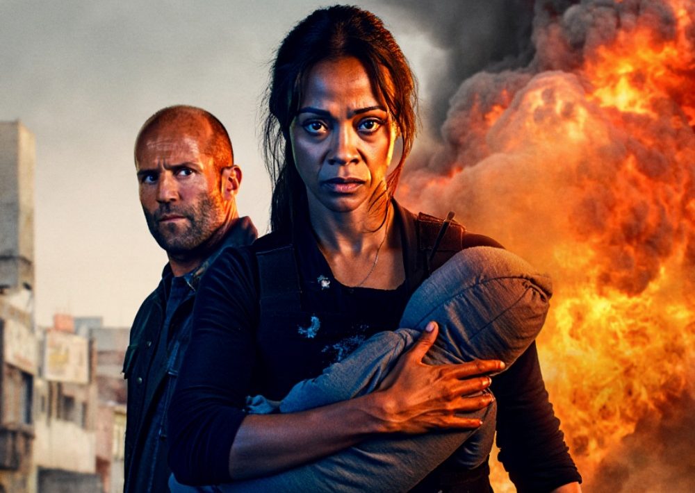Teaming up with her for the ultimate fight is an ex-mercenary (Jason Statham) with his own demons — a man whose past is just as stained with blood, but whose redemption comes at a different price. Statham brings his trademark physicality and no-nonsense charisma, providing the perfect foil to Saldana’s tortured assassin. The chemistry between the two is electric — a mix of reluctant allies and unlikely partners, both bound by a common goal yet driven by vastly different motives. Together, they forge a bond that’s as explosive as the action they unleash.