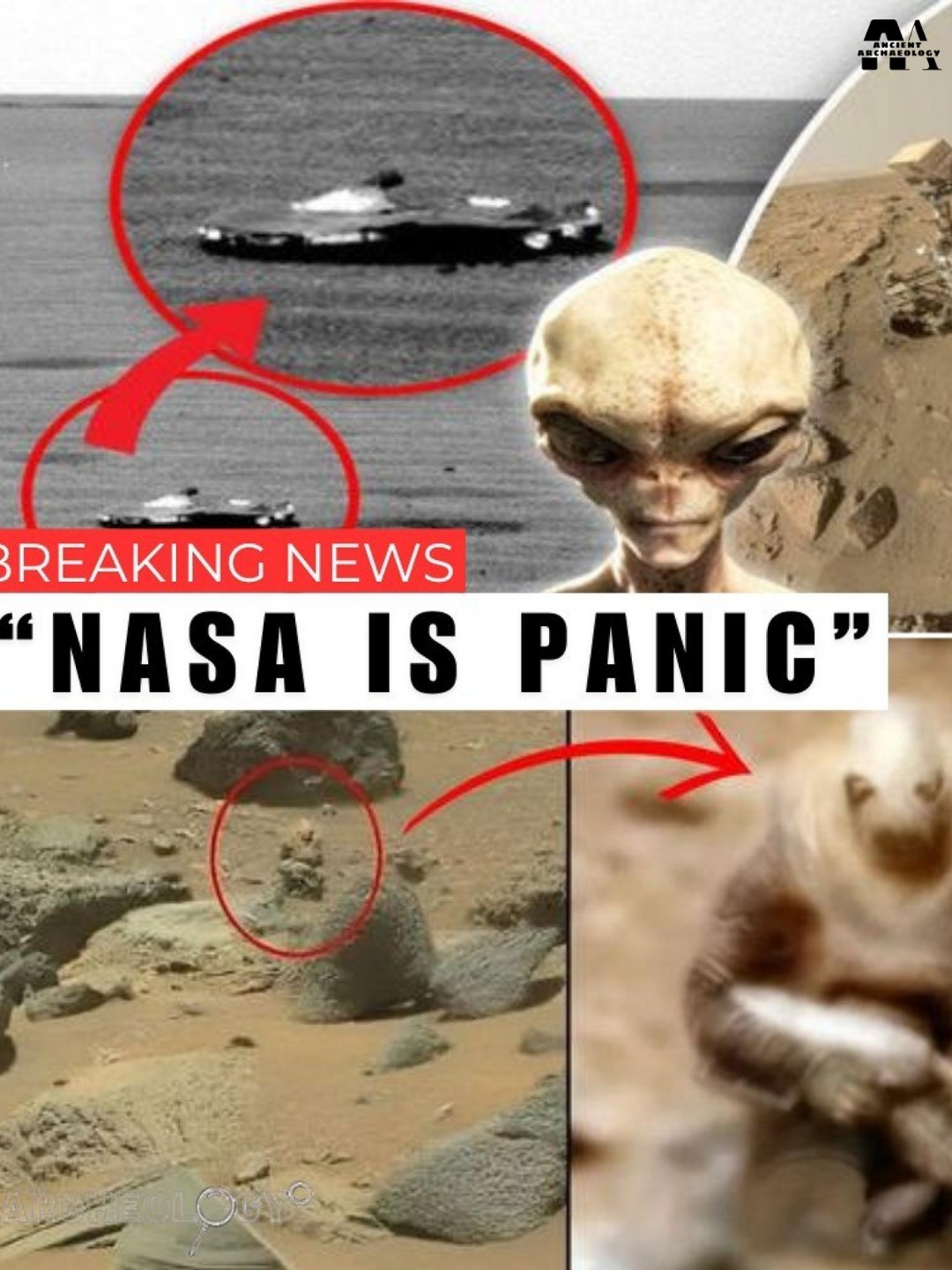 Viral claims suggest unedited Mars rover images show a crashed disc-shaped craft and a humanoid figure holding an infant â allegedly causing panic inside NASA. đą