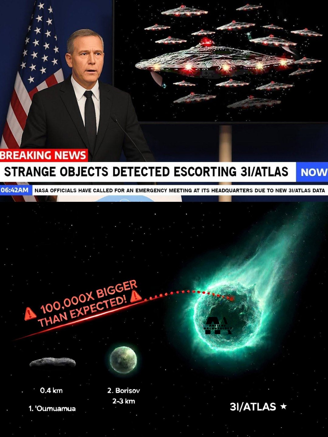 Online posts claim NASA held an emergency meeting after detecting massive unidentified objects surrounding the interstellar object known as 3I/ATLAS β describing a βfleetβ of advanced craft moving in formation. π½