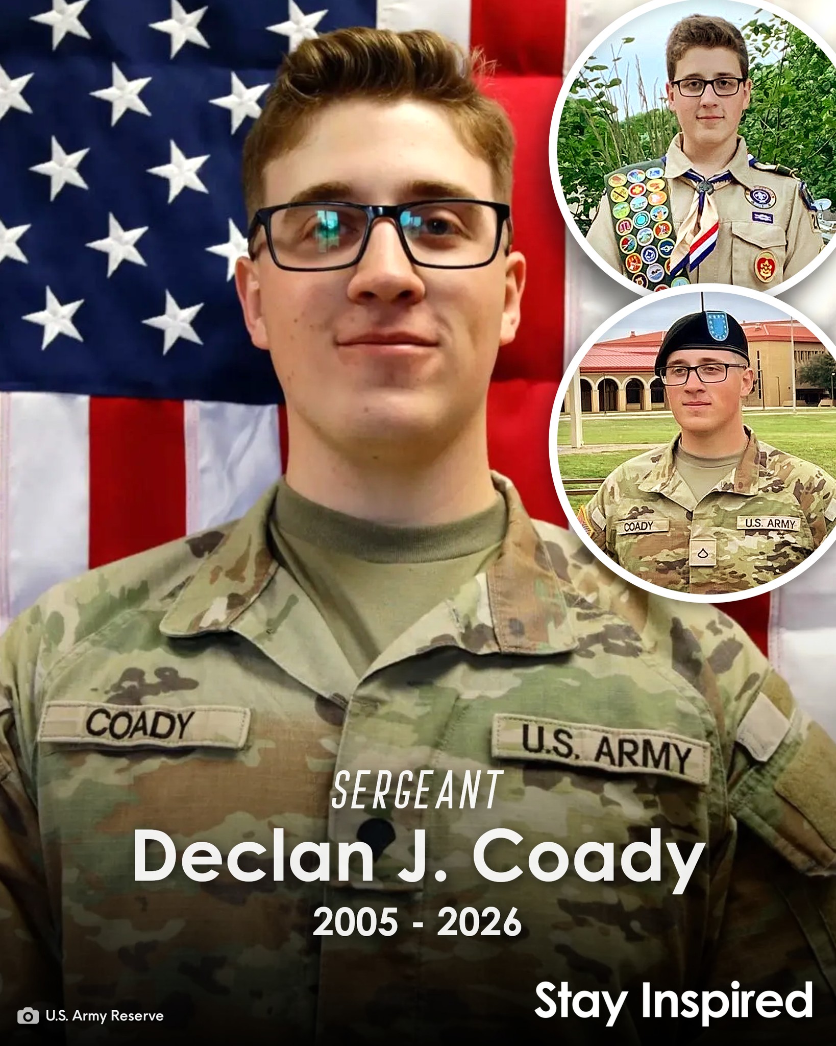 Sgt. Coady was born in West Des Moines, Iowa. He was a sophomore pursuing an Information Technology undergraduate degree at Drake University. In a statement with the Associated Press, his father Andrew Coady said his son told him last week he had been recommended for a promotion from specialist to sergeant, a rank he received posthumously. With tears in her eyes, his sister Keira Coady said, “It’s just really hard… I just really wish I got to tell him I love him one more time because he was just so amazing and kind.”