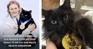 Gold medals usually end up displayed proudly on shelves or hanging around the necks of champions. But for figure skating star Ilia Malinin, one special medal briefly found a far more unexpected place — on the head of his beloved cat.