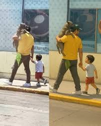 On a hot summer day, a father walking down the street suddenly became the center of criticism from strangers. Observers noticed something unusual — he was carrying his dog in his arms while his young son walked beside him.