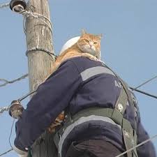 The curious cat somehow managed to climb all the way to the top of a tall phone pole, perched high above the ground like the self-declared ruler of the neighborhood. From up there, he seemed perfectly confident — at least until reality set in. 📡🐾