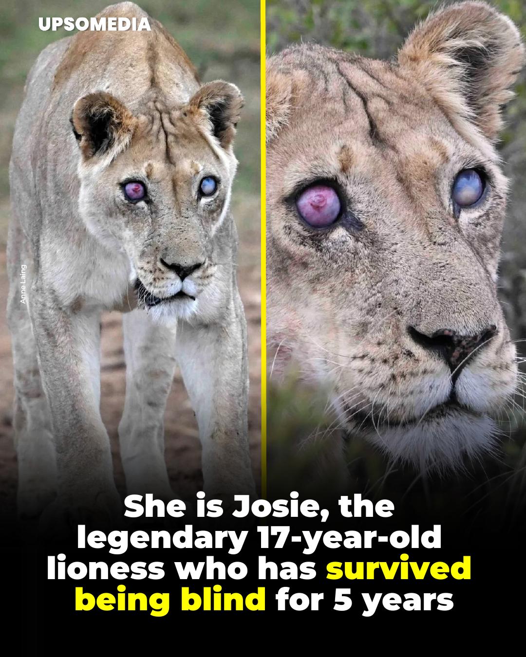 🦁 Josie, a lioness now 17 years old, lost her sight about five years ago. For most wild predators, blindness would make survival nearly impossible. Hunting, navigating territory, and avoiding danger all depend heavily on sharp vision.