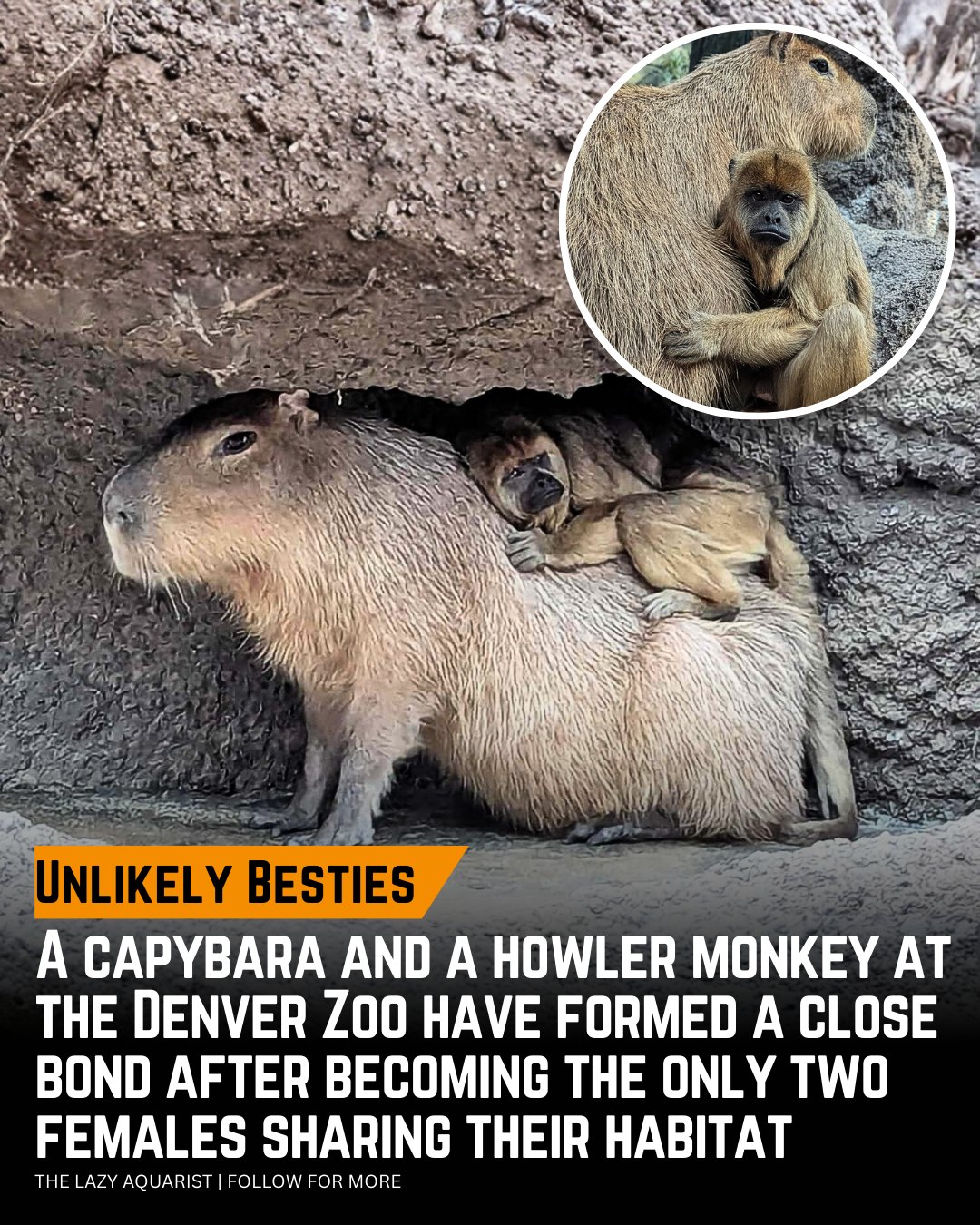 A capybara 🦫 and a howler monkey 🐒 had quietly formed an unusual friendship.