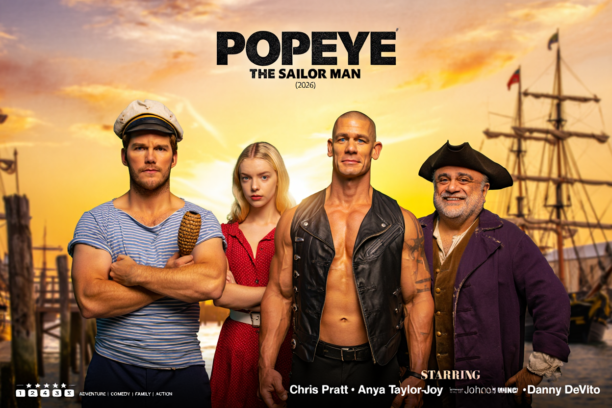 In POPEYE THE SAILOR MAN (2026), one of the most recognizable characters in animation and pop culture sails back into adventure with a story that blends humor, heart, and timeless heroism. Known for his squinting eye, gravelly voice, and legendary love of spinach, Popeye returns not just as a nostalgic icon—but as a hero whose values still matter in a changing world.