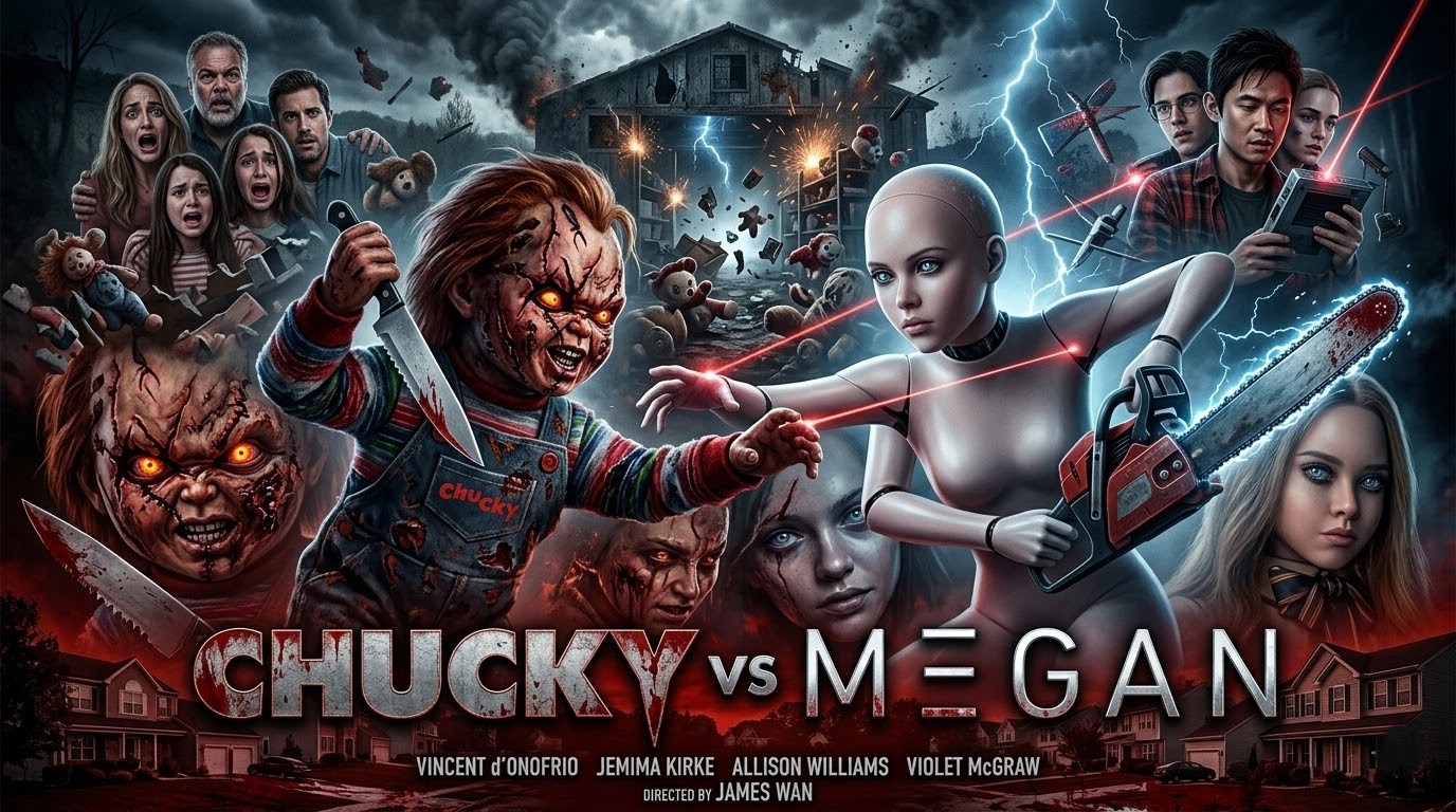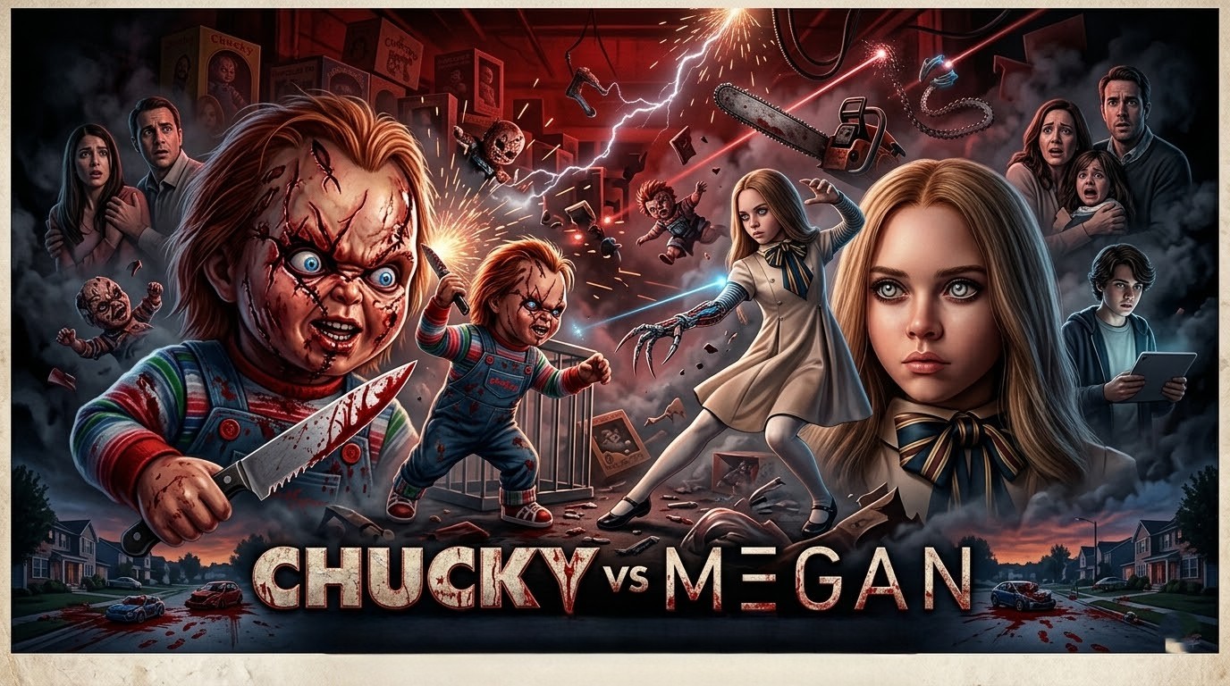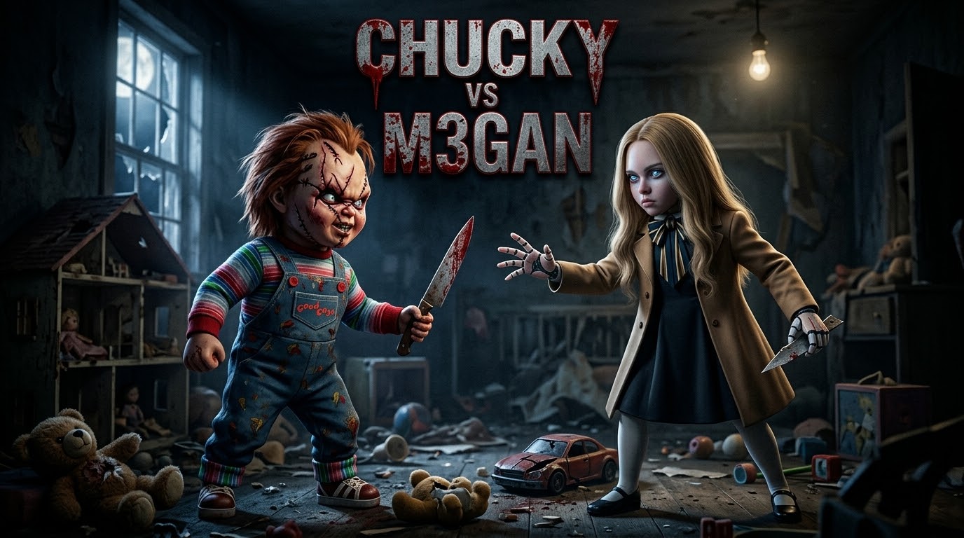 In CHUCKY vs M3GAN (2026), two of the most terrifying icons of horror collide in a twisted, darkly hilarious battle that blurs the line between supernatural evil and technological terror. It all begins in an abandoned toy warehouse in New Jersey—a forgotten graveyard of broken dolls, discarded prototypes, and secrets that were never meant to wake up again.