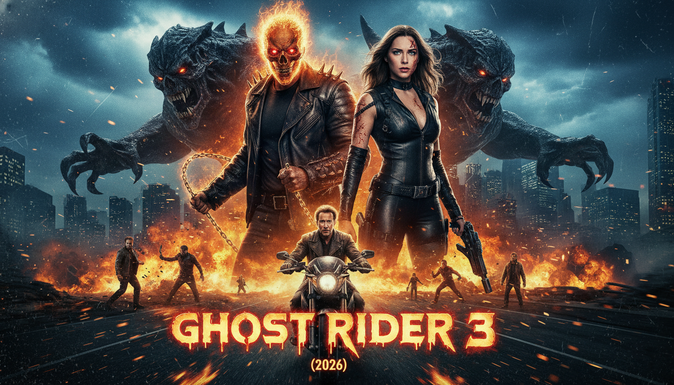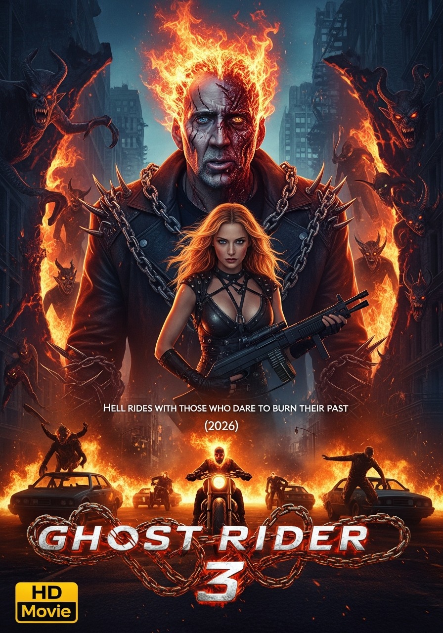 In GHOST RIDER 3 (2026), the spirit of vengeance returns with a fire hotter than ever, plunging audiences into a dark world where morality, justice, and the supernatural collide. Johnny Blaze (Nicolas Cage), the legendary Ghost Rider, thought he had severed the chains of his cursed life, seeking redemption for the sins of his past. But the world has changed, and darkness never rests. Ancient demons, once trapped in the shadows of hell, have begun crossing into the mortal realm, threatening to engulf humanity in chaos.