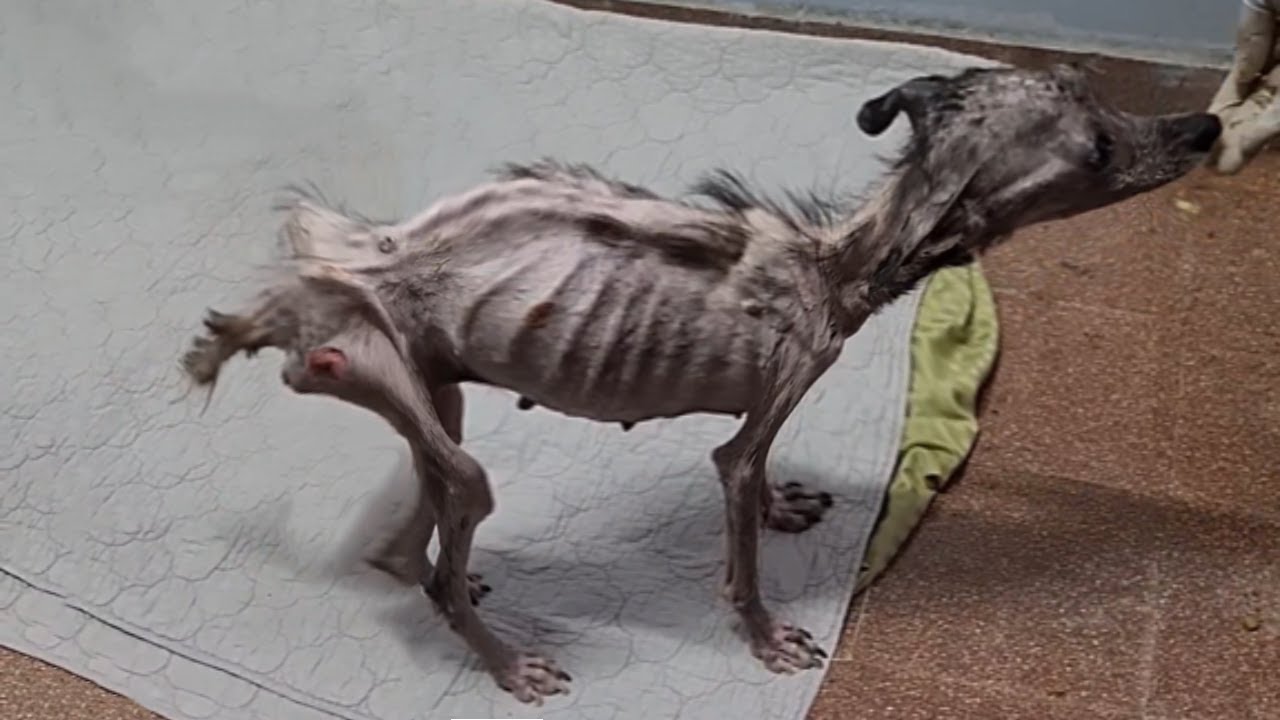 When rescuers finally found her, they were met with a sight that broke their hearts. The young dog was little more than skin and bone; every rib stood out, every breath came with effort. She could barely lift her head, yet her eyes still searched for kindness.