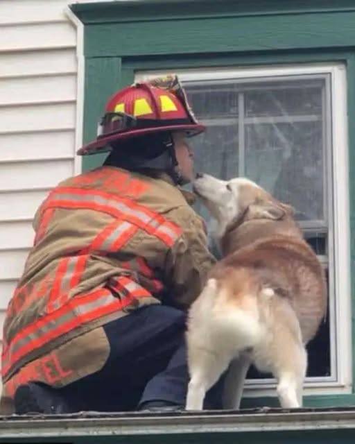 A photo of that moment, showing the soot-covered firefighter and the grateful dog, quickly spread around the world. But for Ryan, it was never about recognition. It was about connection — the kind that forms when two souls meet in the middle of disaster and decide to hold on.