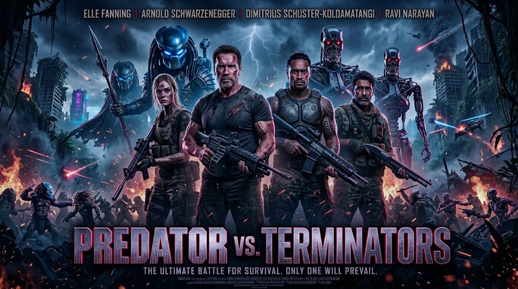 Predator vs. Terminators (2026) Elle Fanning • Arnold Schwarzenegger • Dimitrius Schuster-Koloamatangi • Ravi Narayan