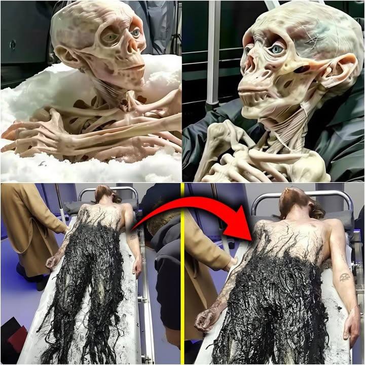 With gray, leathery skin, a missing limb, and a smooth, featureless face, the being appears neither human nor animal. Scientists who first encountered it have described the find as both breathtaking and terrifying — a puzzle that defies all known biological classification.
