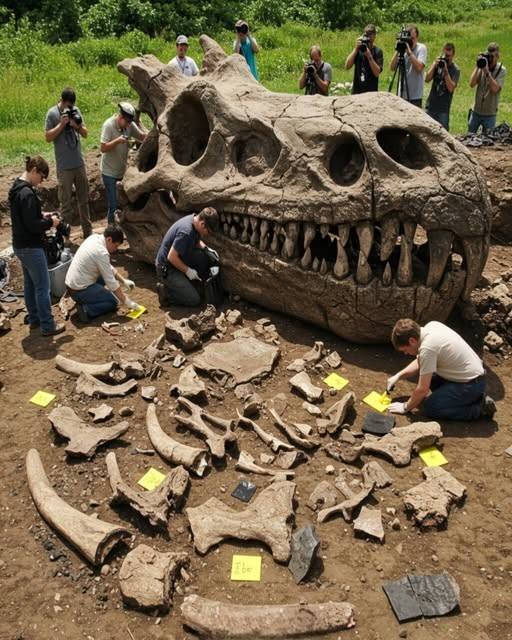 In the windswept deserts of Patagonia, where time itself seems carved into stone, a discovery has emerged that may upend everything we know about human evolution. Archaeologists, working in one of the most remote dig sites on Earth, have uncovered a colossal humanoid skull measuring nearly eight feet in length — a find so improbable that even the most seasoned researchers are questioning reality itself.