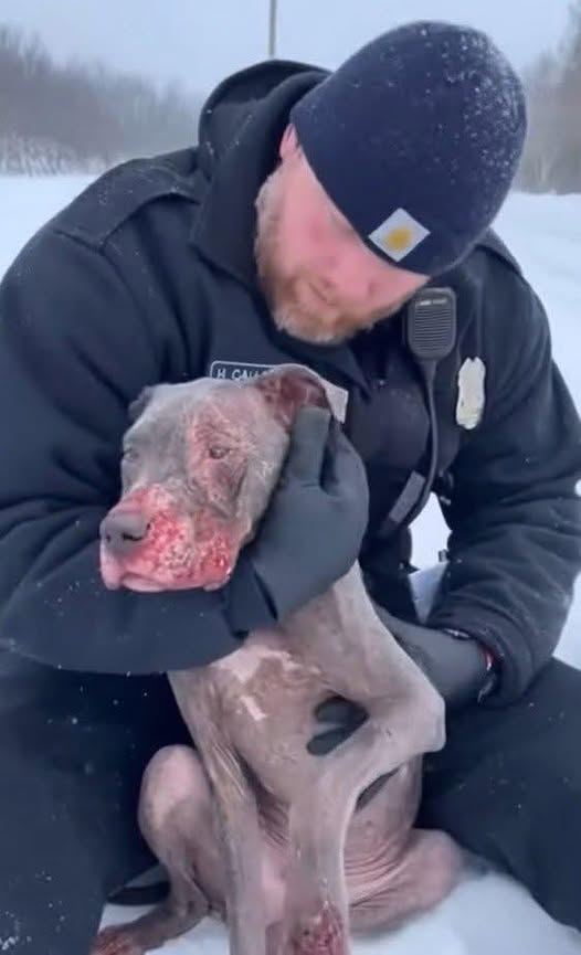 The call that came in late that winter evening described an “aggressive, possibly dangerous dog” wandering along an isolated service road. After ten exhausting hours on duty, Officer Matt Kade expected trouble when he arrived at the scene. Instead, what he found was a creature on the edge of death.