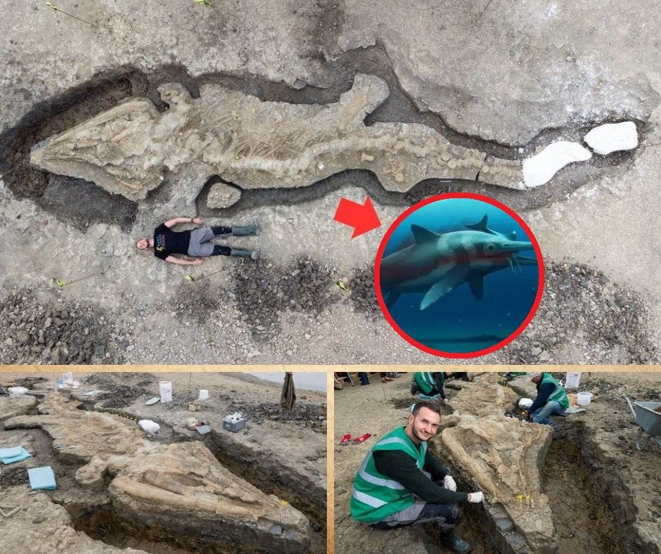 In a discovery that has stunned both paleontologists and enthusiasts of mythology, scientists have unearthed the fossilized remains of a creature unlike any known species. Dubbed the “dragon fossil”, this astonishing find was made in the UK, where the remains of a 30-foot creature, estimated to be 180 million years old, have been carefully excavated from ancient rock. The discovery is shaking the foundations of paleontology, with scientists left to wonder: Could this extraordinary creature — with features unlike any known species — offer new insights into prehistoric megafauna and the creatures that once ruled Earth?
