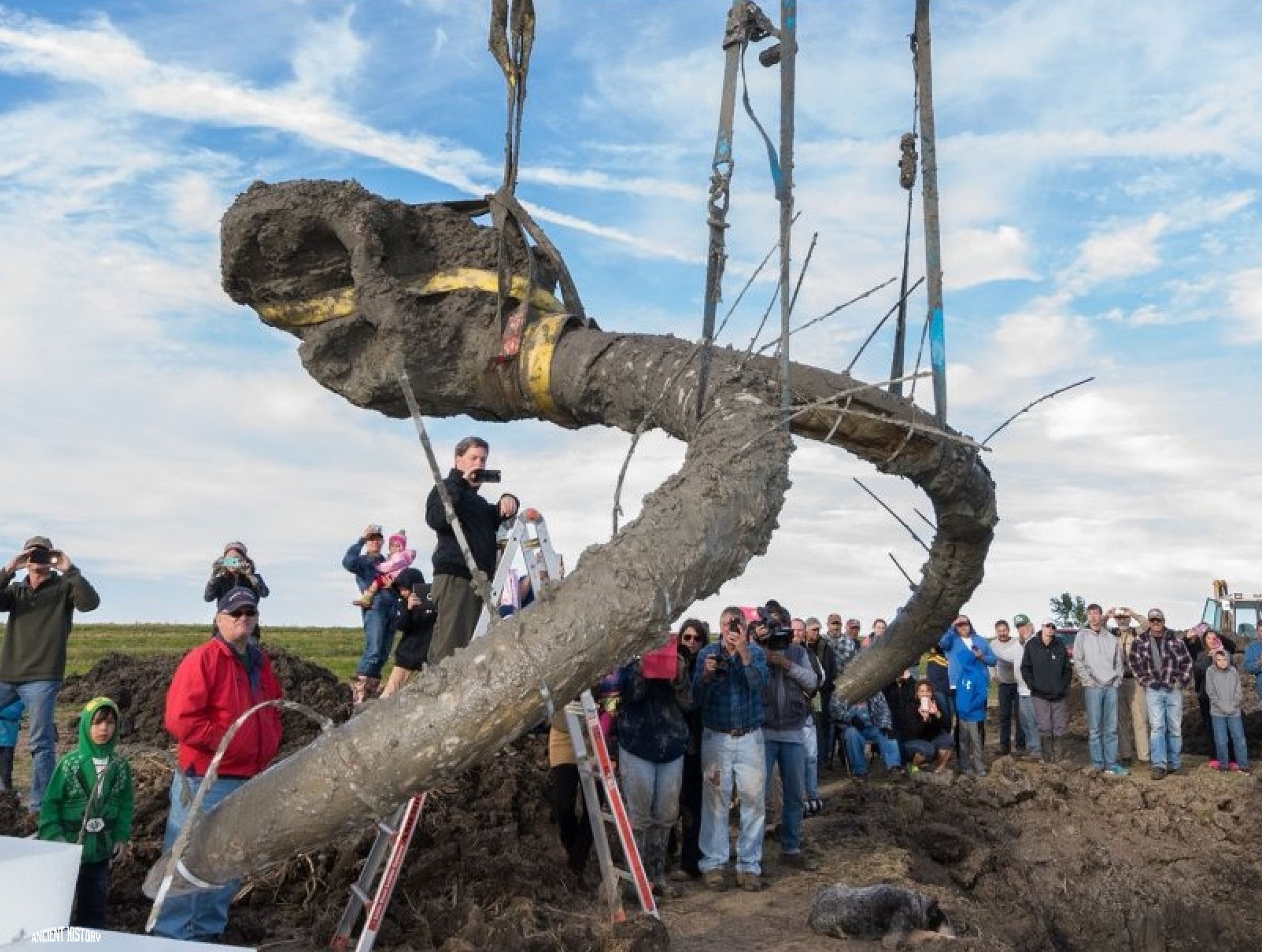 When the cranes lifted the mud-coated tusks from the ground, their sheer size took everyone by surprise. The massive tusks, measuring several feet long, stood as a testament to the immensity of the creature that once wielded them. Paleontologists and onlookers marveled at the thick enamel ridges, the weathered bones, and the wide arcs of the tusks, once sweeping through the frozen landscape of the Ice Age. This stunning find has sparked excitement across the scientific community, as the Columbian mammoth is not just a relic of the past, but a vivid reminder of the majestic creatures that once dominated Earth long before humans walked the land.