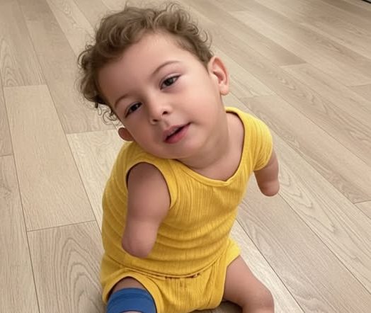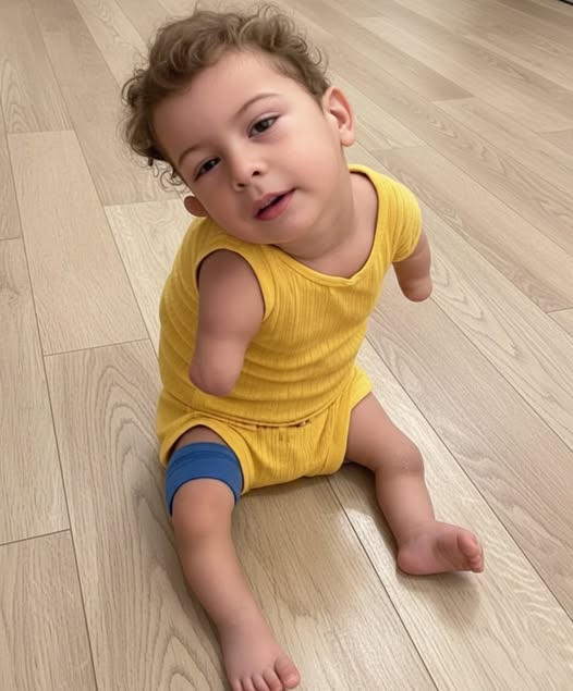 He is not defined by what is missing—the hands that grasp or the absent leg. He is defined by his resilient spirit, one that refuses to buckle and never accepts defeat. In a world that often imposes standards of “perfection” and expected him to surrender to his physical odds, he is quietly, yet powerfully, becoming unbreakable. Every stretch for a toy, every moment he defies gravity to maintain balance, is a monumental victory.