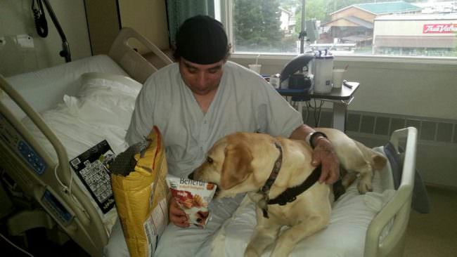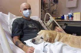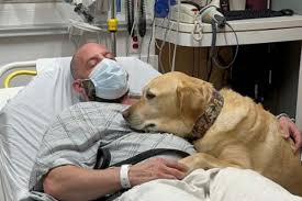 The room was still, filled with the soft hum of machines. She padded carefully to his bedside and climbed up, pressing her body against his. His hand found her fur — weak but familiar — and a faint smile crossed his face. “Hey, girl,” he whispered. Peace settled over them both.