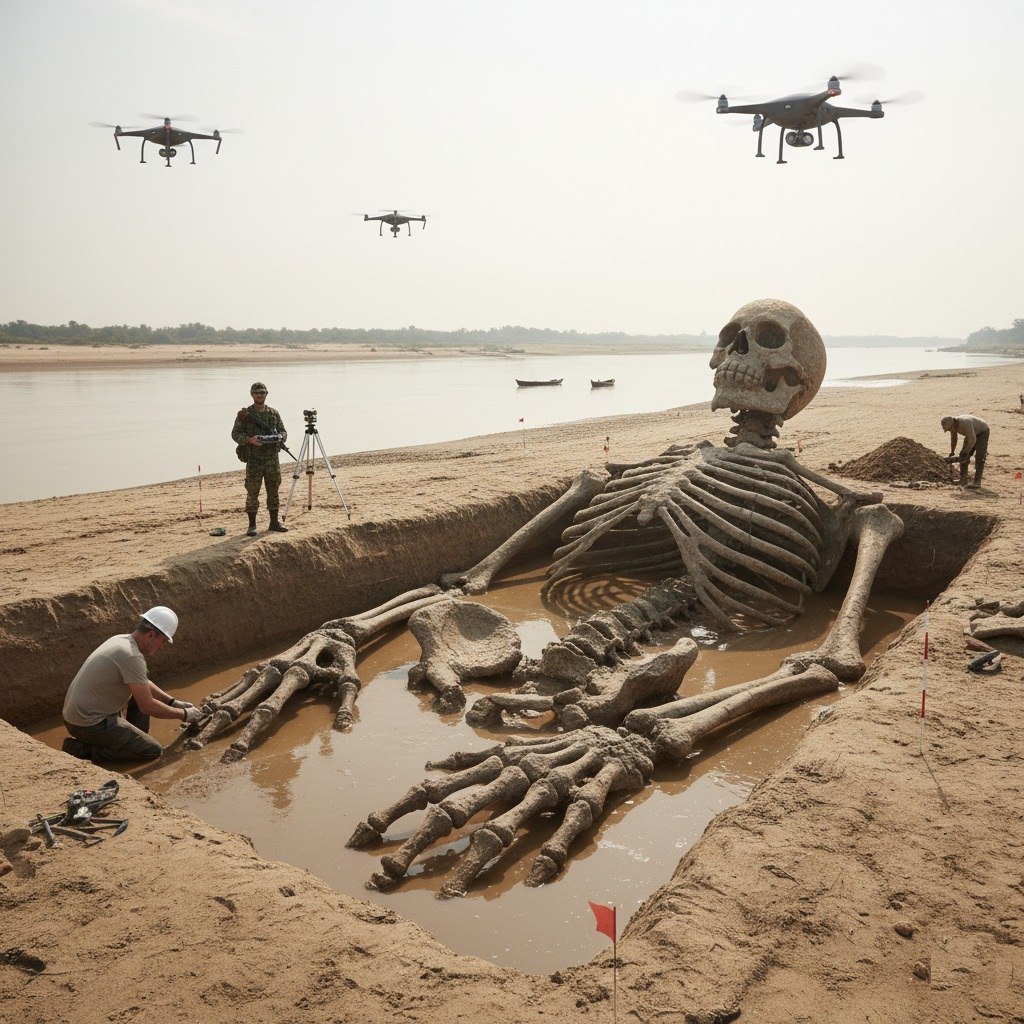 As drones survey the site from above and experts carefully extract each bone and artifact, one thing is certain: the mystery of this colossal skeleton is far from over. What will the excavation reveal, and what secrets does the Nile River still hold?