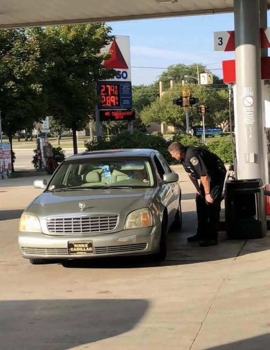 Without hesitation, the officer followed her to her vehicle and gently suggested she sit and rest while he pumped the gas for her. As they spoke, he learned that she had no money left beyond the three dollars and very little fuel remaining.