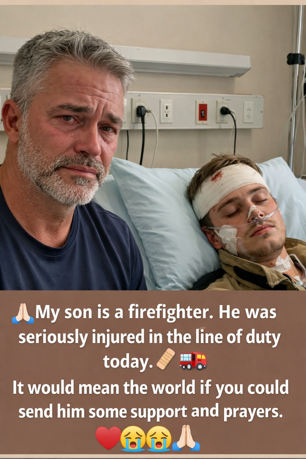 Now he rests, wounded but alive, while a father holds back tears and hope.