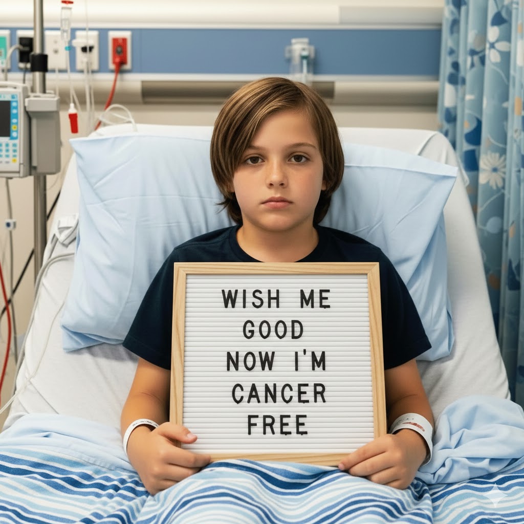 Holding a simple sign — “Now I’m Cancer Free” — this young warrior proves that courage has no age .